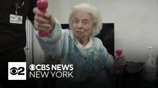 Muriel Levine was strong enough to walk out of her Long Island rehab center after months of physical therapy from a heart condition. CBS News New York's Jennifer Bisram reports.