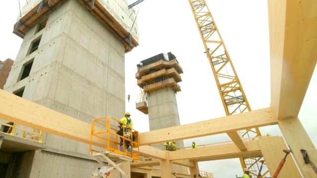 Urban builders are switching from steel and concrete to a material that is more sustainable and friendly to the environment. The use of what's called mass timber is up 15%. Rob Marciano reports.